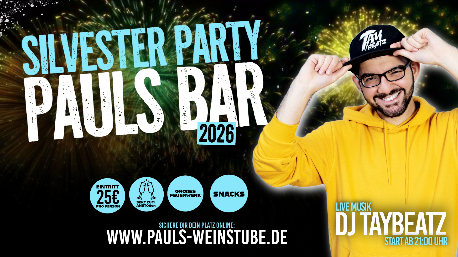 Feiere den Jahreswechsel 2025/2026 in ganz besonderer Atmosphäre , bei der großen Silvester Party in Pauls Bar!